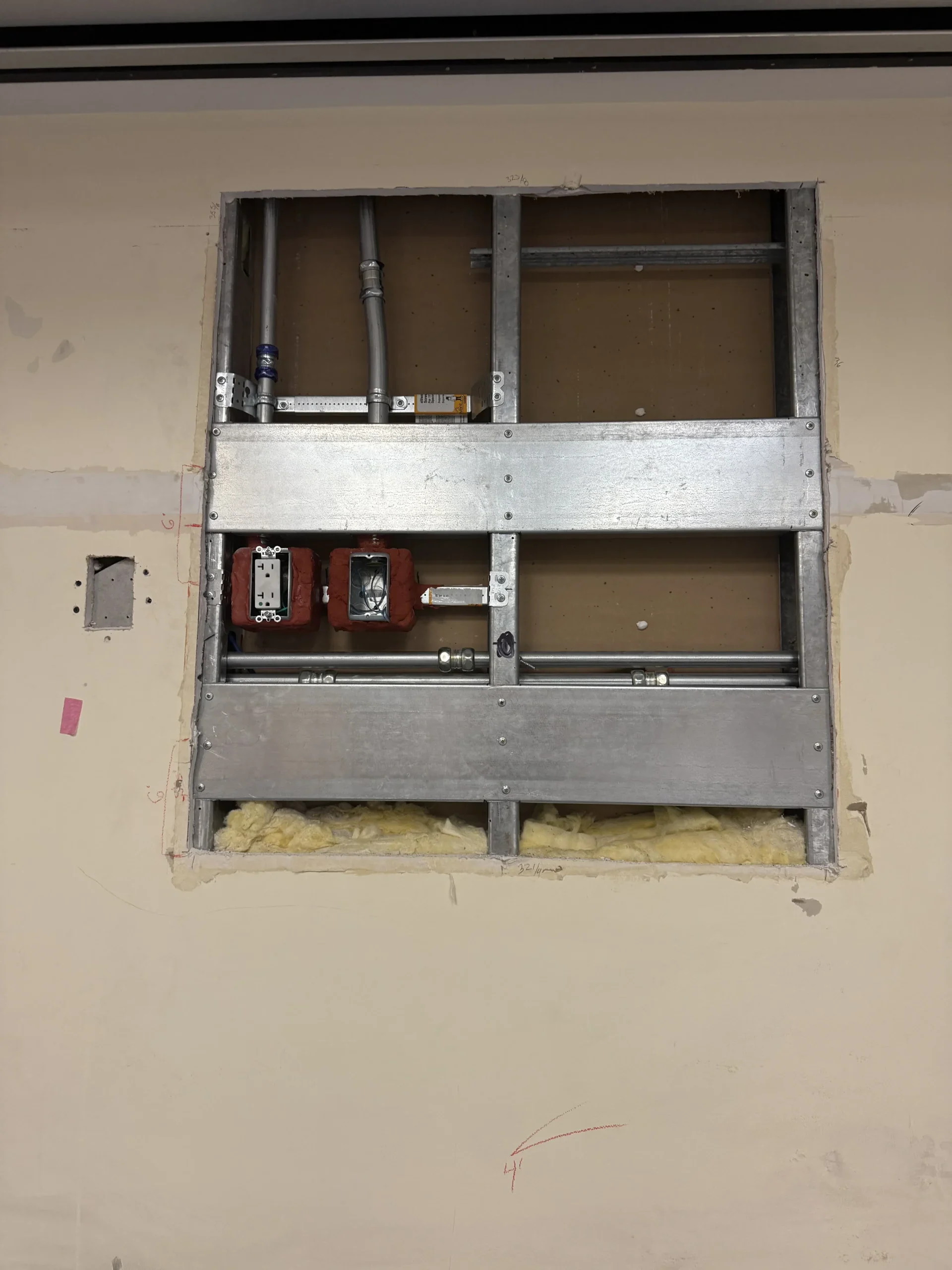 APS was engaged to implement wall reinforcement solutions across multiple interior spaces requiring specialized backing systems. Included installation of Type 1 standard partition wall backing plates to support various fixtures and wall-mounted equipment. These were based on OPD-0001-13 compliant details, ensuring structural adequacy and code compliance.