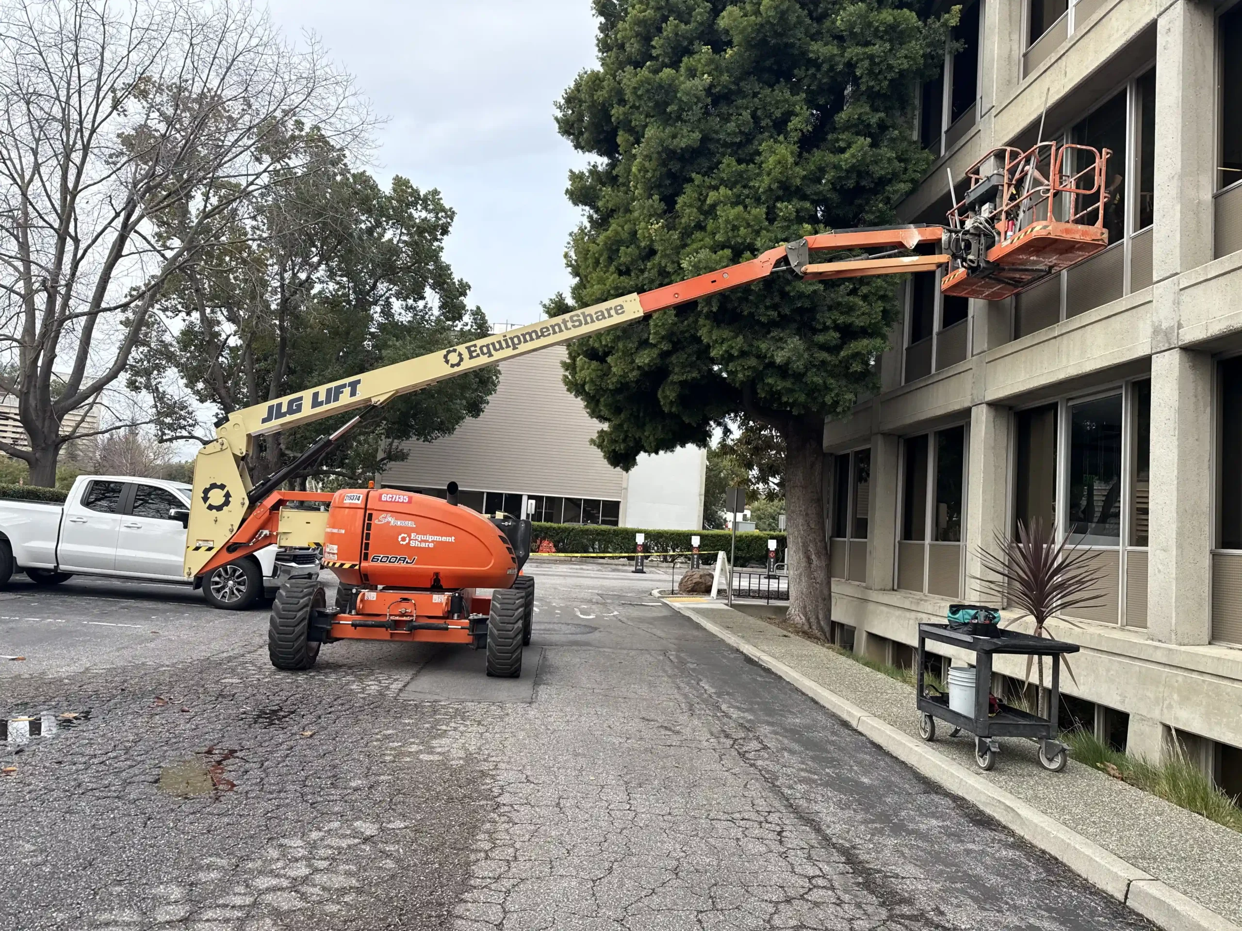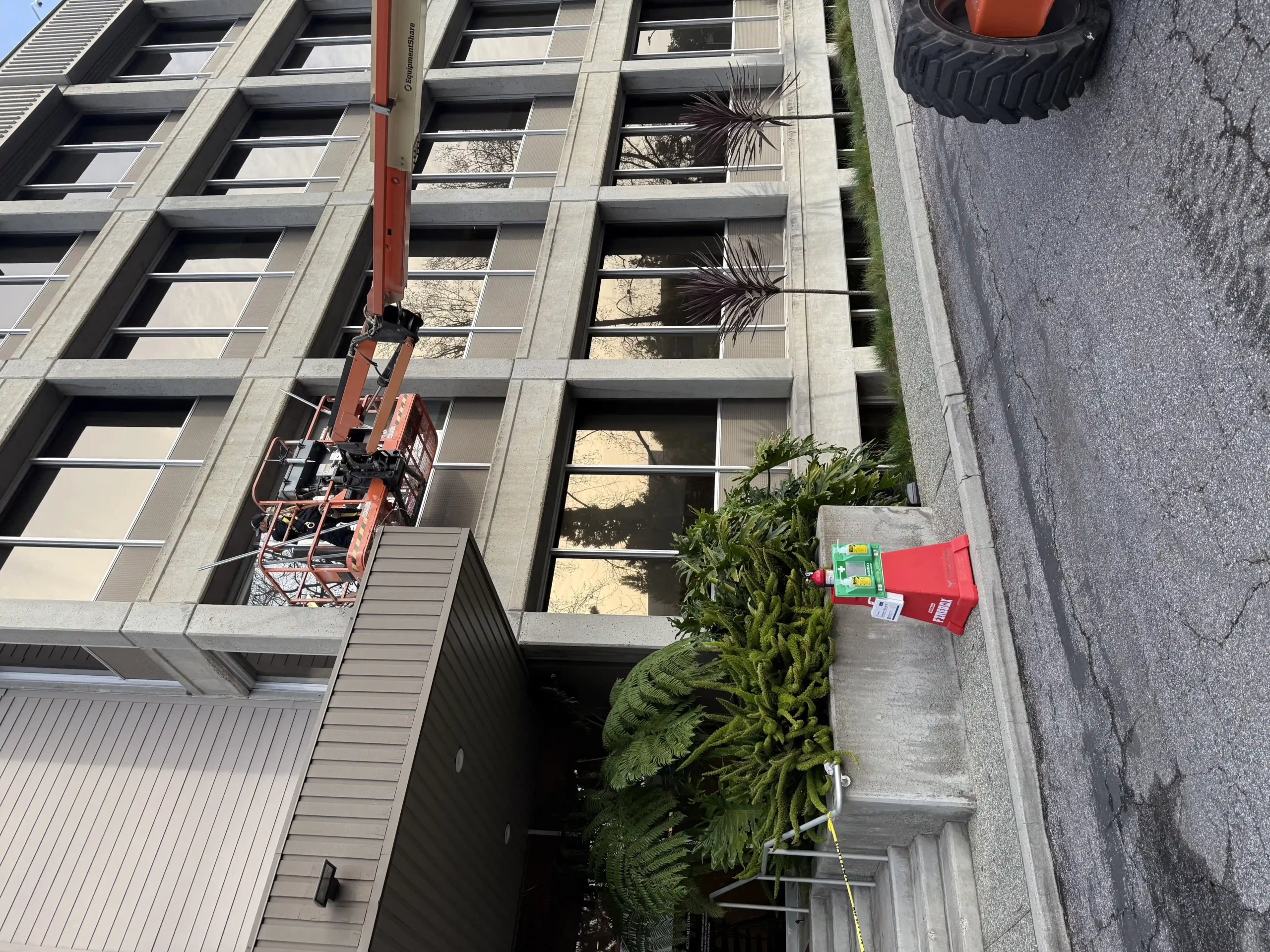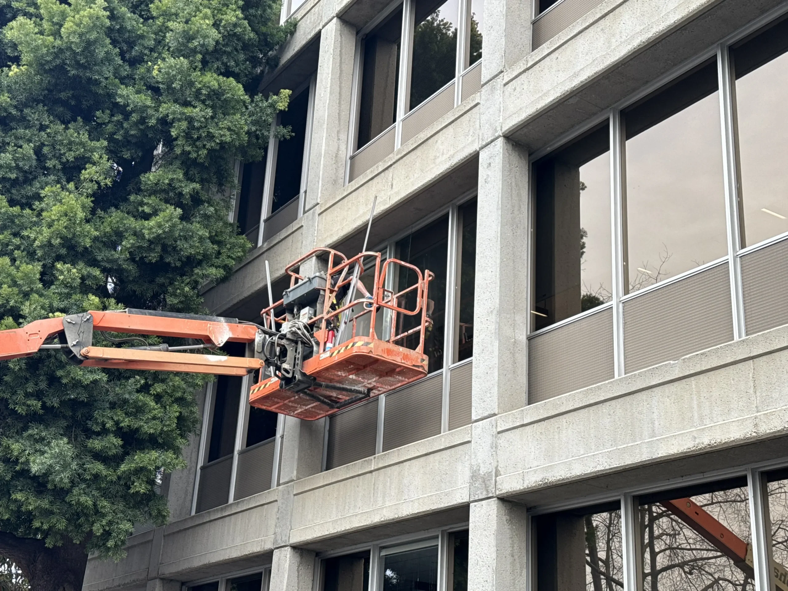 APS was mobilized on an emergency basis to replace five broken exterior glass panes at 900 Welch Road. The scope included removal of exterior trim, safe demolition of damaged glazing, and installation of new ¼” clear “like-for-like” glass. Work was executed with strict adherence to infection control protocols, including HEPA-grade dust extraction, full dust containment, floor protection, and temporary furniture removal. APS coordinated the use of a 40-ft boom lift with flagging and on-site safety supervision, ensuring minimal disruption. The project was completed over a weekend within two days, followed by detailed cleaning and quality inspection.