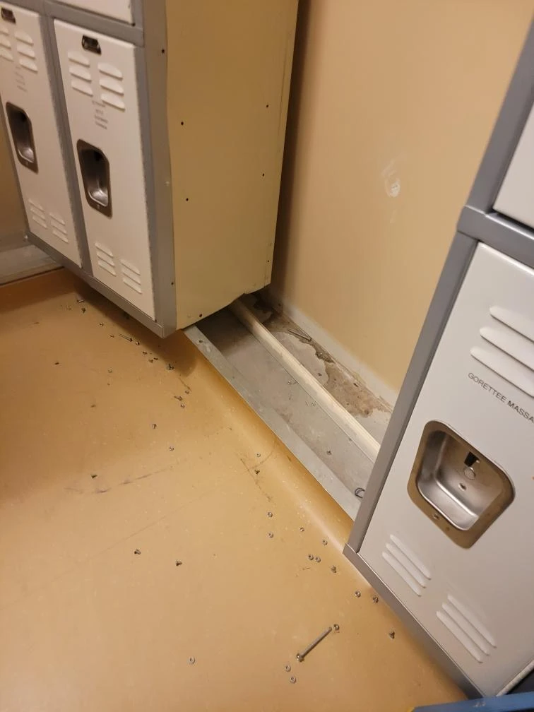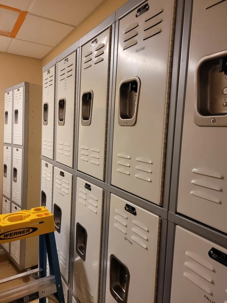 The project involved full demolition of existing locker systems, followed by wall restoration and repainting across approximately 324 square feet. APS prepared and installed a new healthcare-grade rubber flooring system, including substrate leveling, integral cove base, and heat-welded seams to meet durability and hygiene requirements.