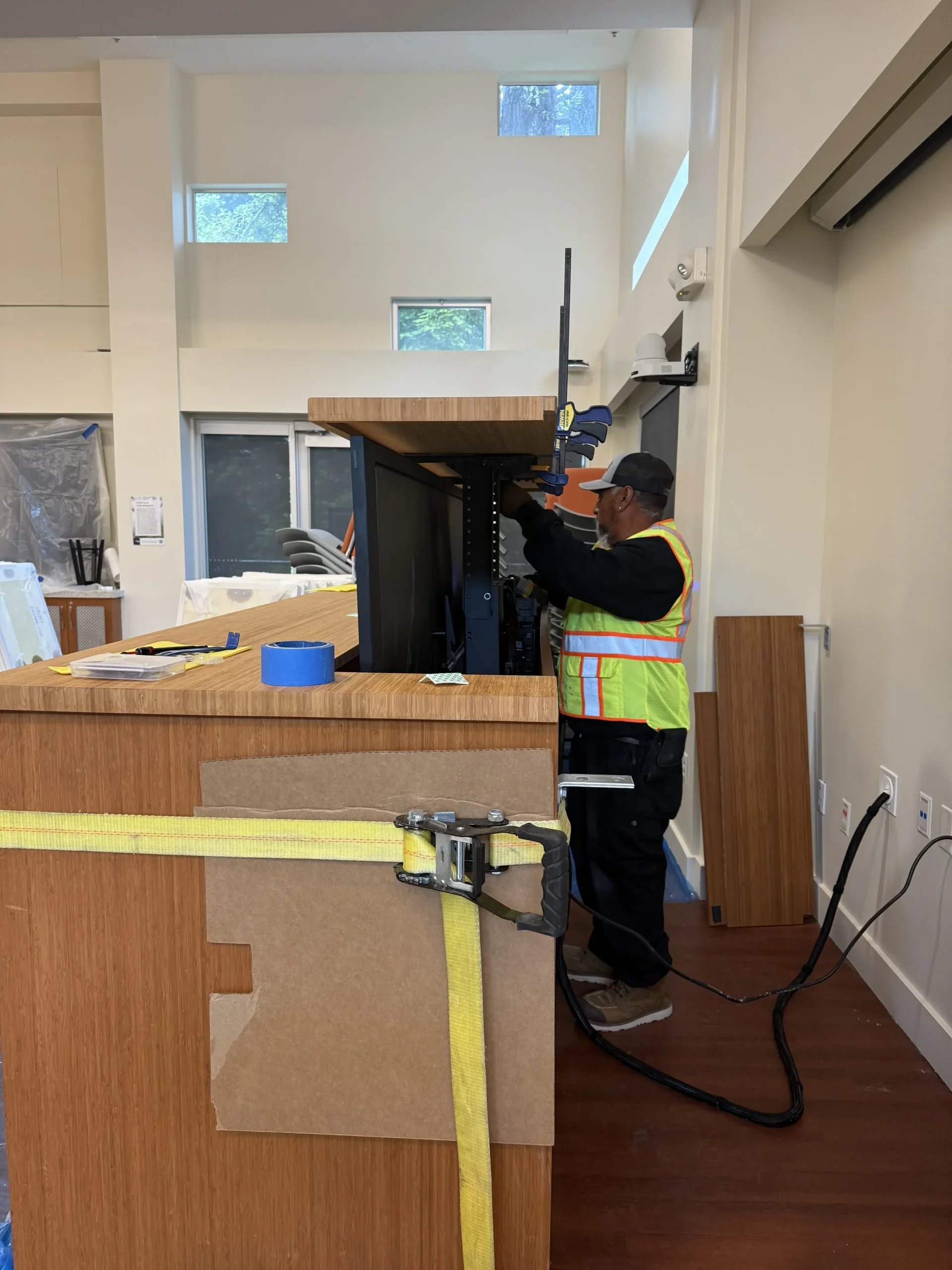 Work was executed based on a coordinated permit set that included architectural, electrical, and structural drawings, ensuring seamless integration with the existing facility. Scope also included new cabling infrastructure, reflected ceiling modifications, and system coordination with telecom rooms to support reliable data and AV distribution.